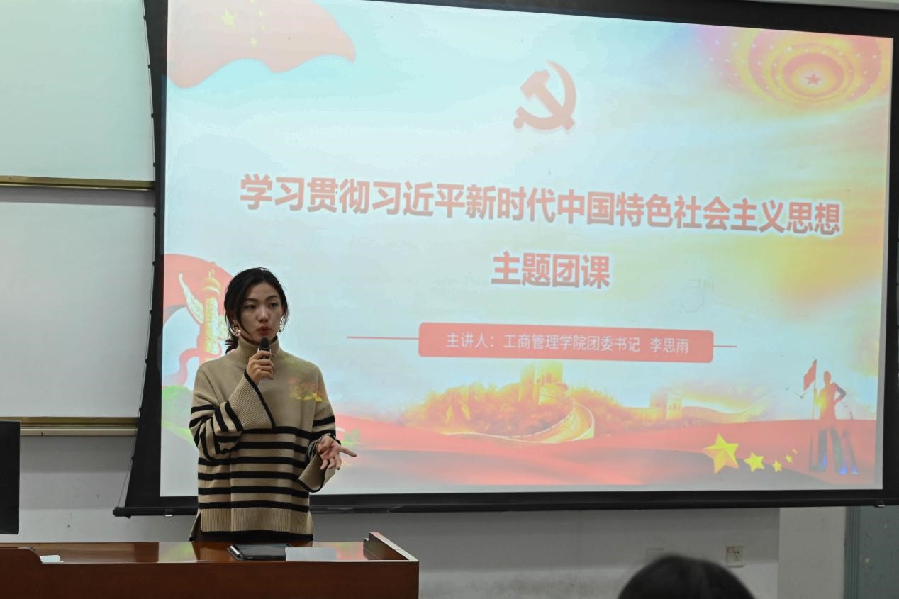 会上,根据校团委团的主题教育工作安排,学院团委书记李思雨为全体学员讲授了"铸魂强基,挺膺担当"主题团课。李思雨结合当前全团主题教育,寄语团学研学生干部要牢记习近平总书记的嘱托,以学为先、铸魂强基,深化理想信念教育,铸牢对党忠诚的政治品格,培养担当实干的工作作风。她强调,在之后的工作中,要持续提升团委、学生会、研究生会的组织力、引领力、服务力,打造政治素养过硬、作风严实的学生干部队伍,为教育强国西财篇章贡献工商力量。